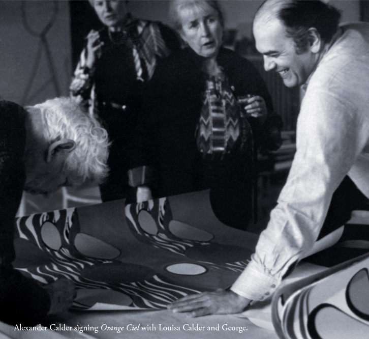 We offer a selection of Alexander Calder hand signed limited edition lithographs from the 1970’s, when George was Calder’s American publisher, as well as the vivid plate signed lithographs from the Flying Colors collection, commissioned by Braniff Airlines in 1973.